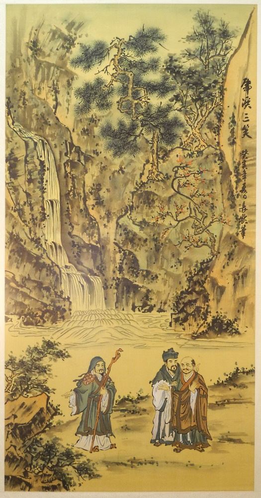 Chinese Ink and Colour Painting on Silk, 33" x 17".
