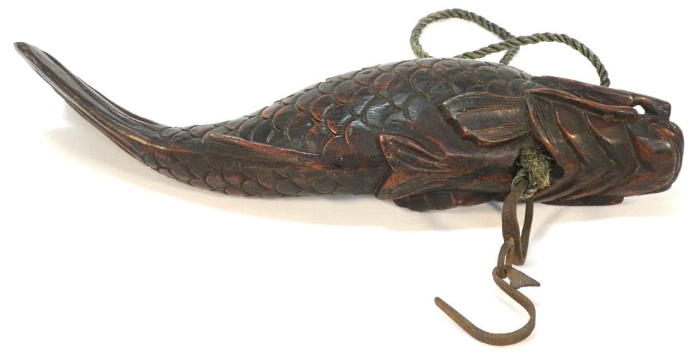 Japanese "Jizaikagi" Fish Form Hearth Hook, 23"L.