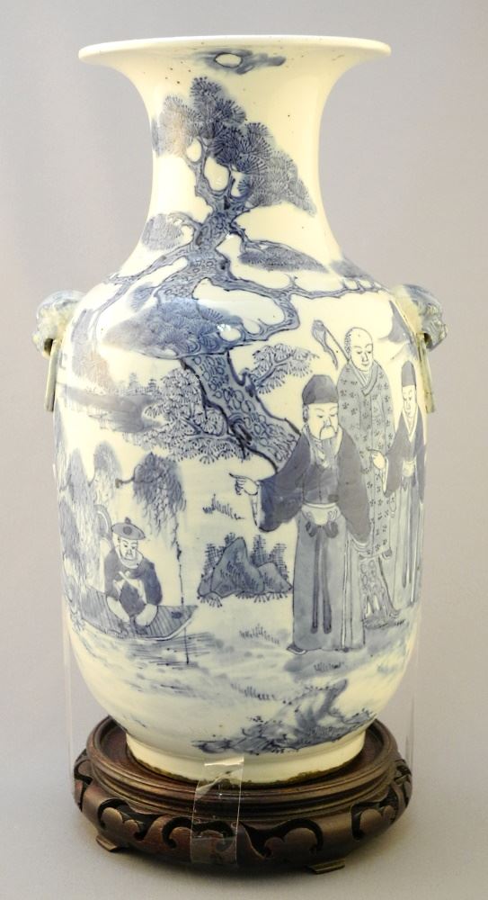 Chinese Blue & White 19th C. Porcelain Vase, 11 3/4", "3 Sages & Student".