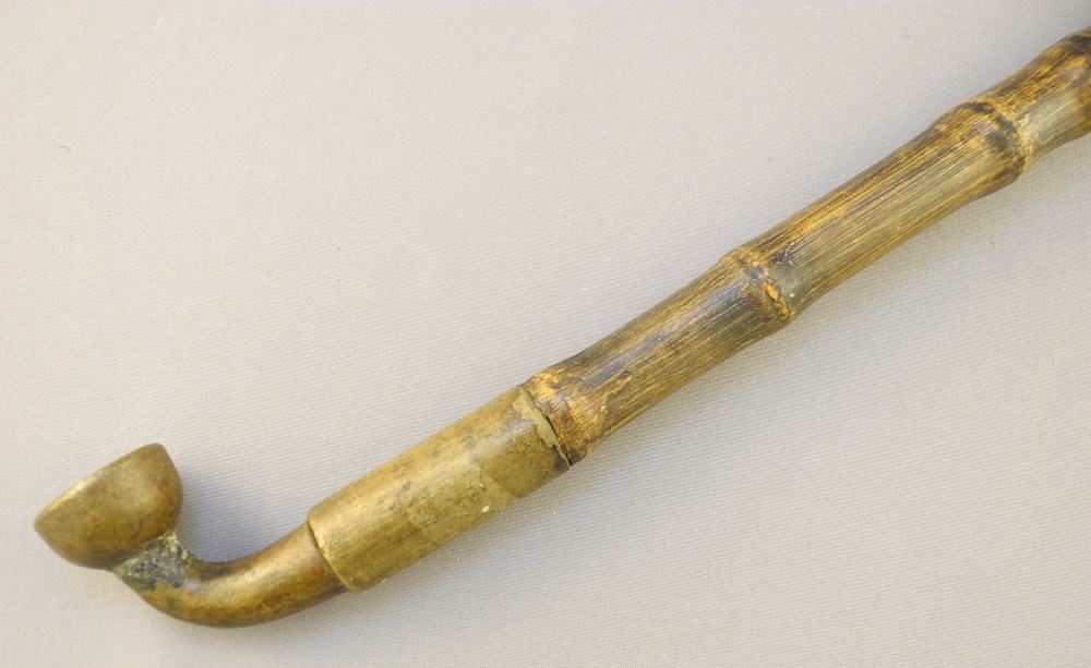 LOT 182 Bronze Bamboo & Jade Pipe, 20 1/2" Length. Estimate: $200 - $300 Auction Date: Tuesday, March 28 2023 at 4:00 PM