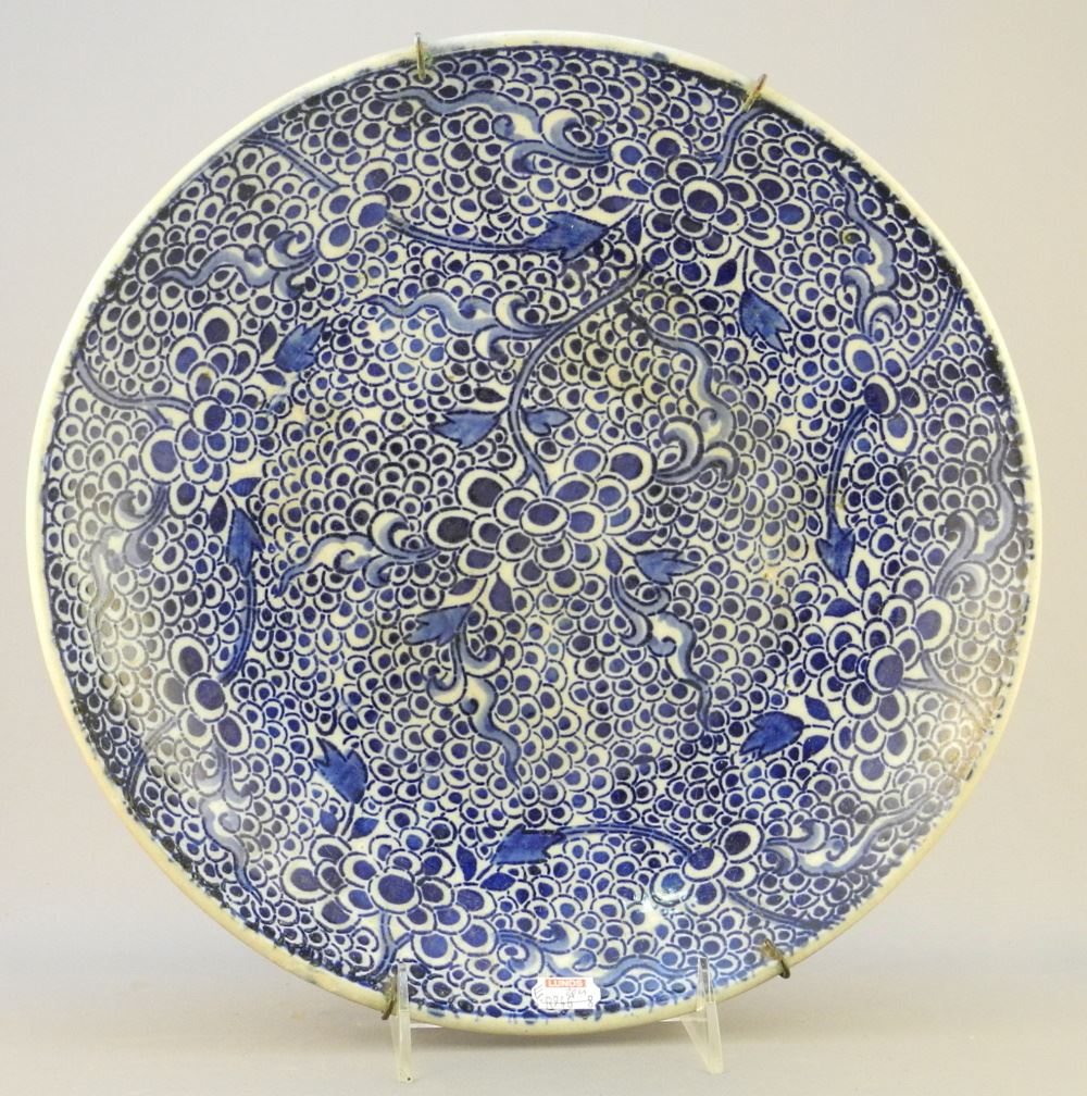 2 Japanese Blue & White Dishes, 12 1/8 - 12 1/2" Diameter.