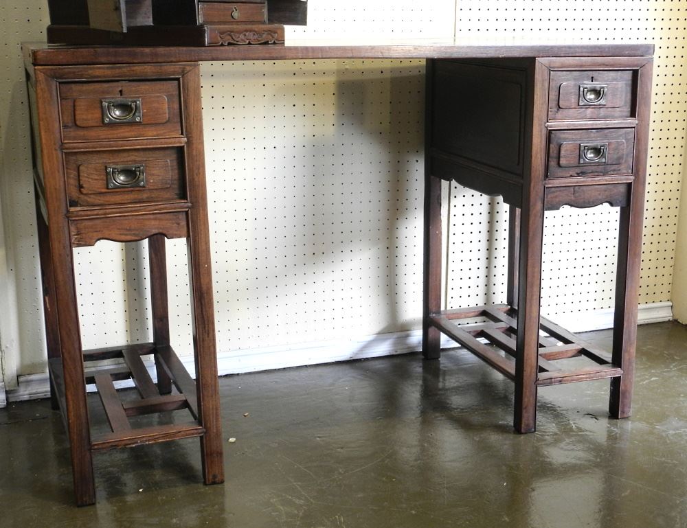 LOT 4 Chinese Rosewood Desk with Offset Tiers, 33 1/4"X49"X21 1/8". Estimate: $500 - $1,000 Sold For: $800 Auction Date: Tuesday, March 28 2023 at 4:00 PM