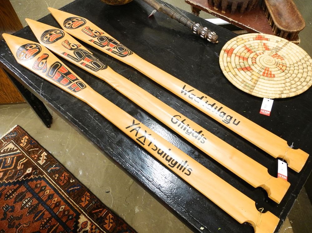 LOT 200B 3 1997 Tribal Canoe Journeys Carved & Dedicated Paddles, 59 3/4". Estimate: $600 - $800 Auction Date: Tuesday, March 28 2023 at 4:00 PM