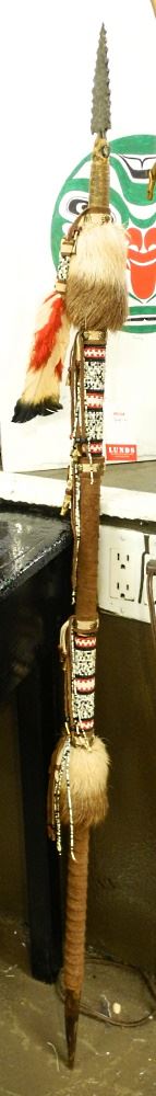 LOT 53 First Nations Spear: Metal Tip/ Beaded/ Fur Mounted - No Export. 52 1/2"l Estimate: $80 - $120 Sold For: $60 Auction Date: Tuesday, March 28 2023 at 4:00 PM