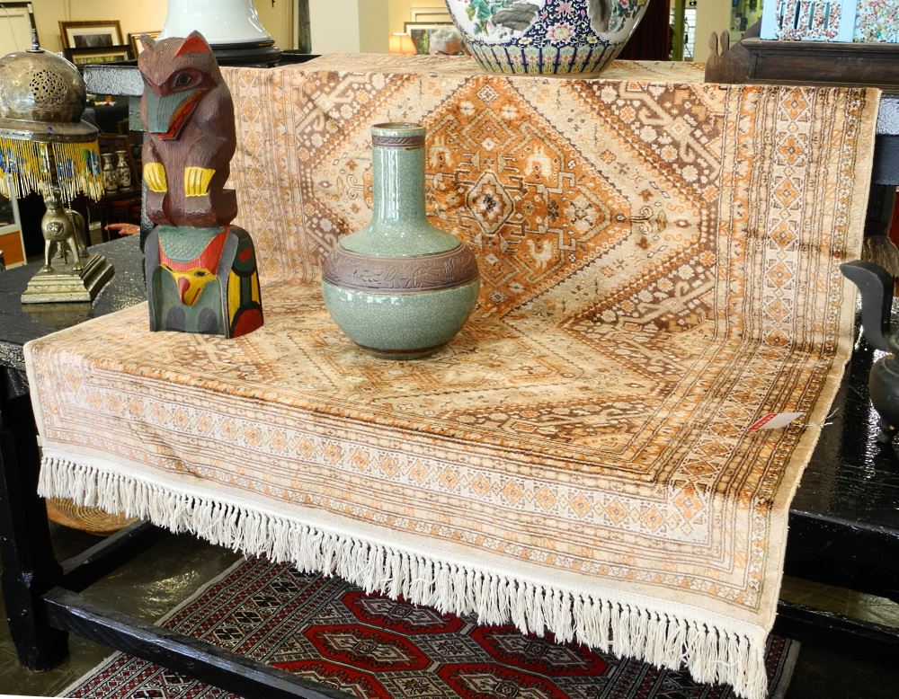 Turkish Silk and Cotton Carpet, Approx. 6'4" x 3'10", Apricot Tones.