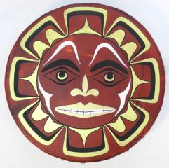 LOT 157 Hide Drum With Sun Design Signed Virgil Sampson, 18 1/2"d. Estimate: $450 - $600 Sold For: $450 Auction Date: Tuesday, May 30 2023 at 4:00 PM