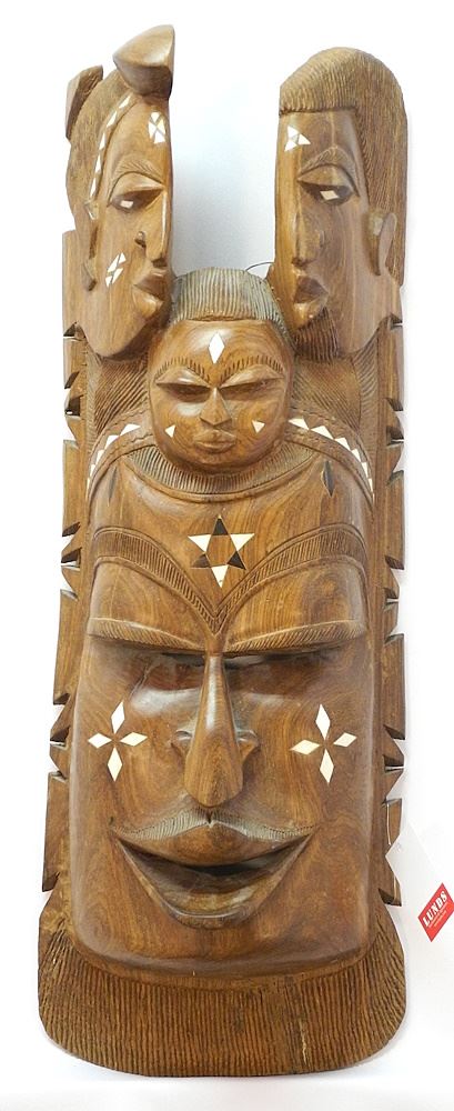 LOT 149 African Hardwood Mask with Bone Inlay, 31"H. Estimate: $60 - $100 Sold For: $30 Auction Date: Tuesday, July 25 2023 at 4:00 PM