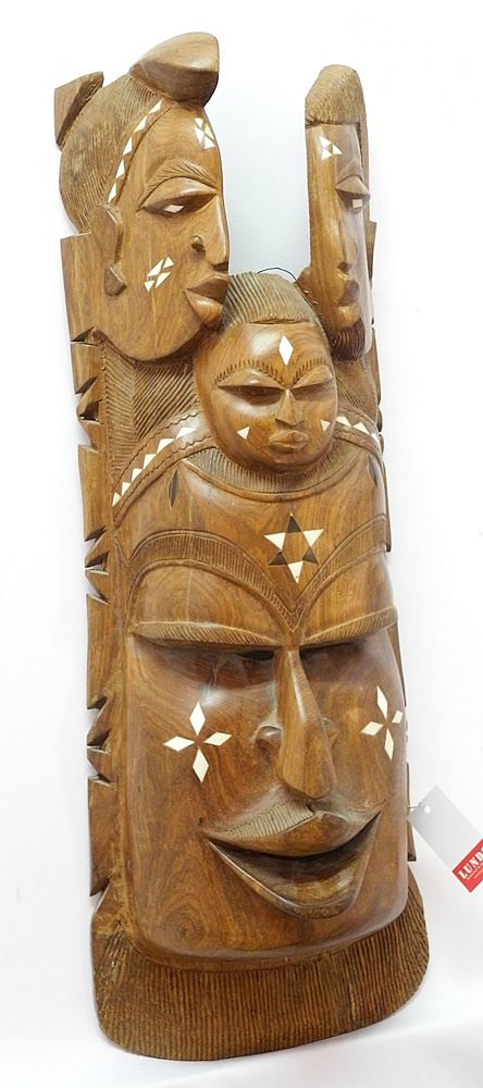 LOT 149 African Hardwood Mask with Bone Inlay, 31"H. Estimate: $60 - $100 Sold For: $30 Auction Date: Tuesday, July 25 2023 at 4:00 PM