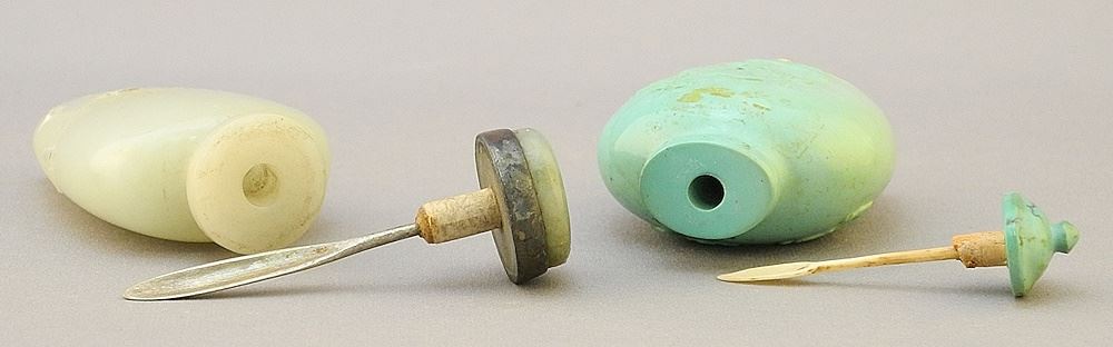 LOT 288 2 Snuff Bottles; Jade (2 3/8") & Turquoise (2 1/8"h) with Bamboo Bangle. Estimate: $100 - $200 Sold For: $700 Auction Date: Tuesday, July 25 2023 at 4:00 PM