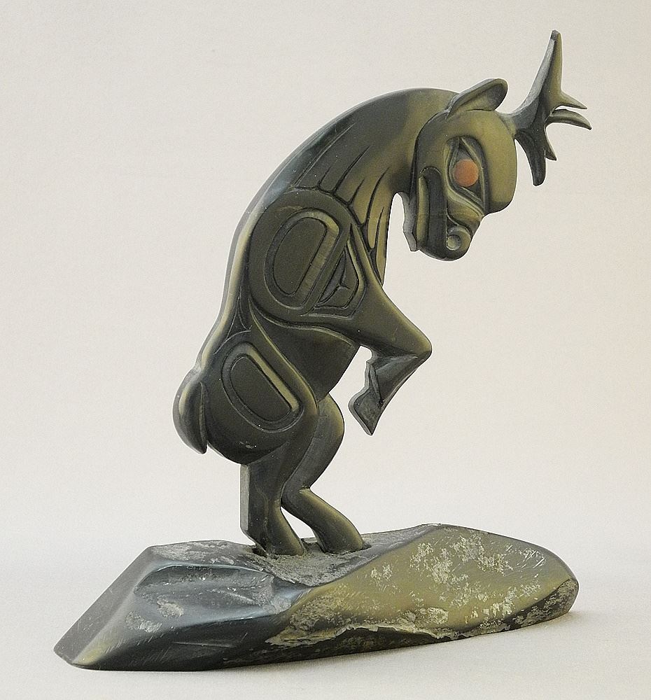 LOT 91 Argillite Sculpture monogrammed AG, 6 1/8 x 5 3/4 x 1 5/8", untitled Deer Figure. Estimate: $200 - $300 Sold For: $150 Auction Date: Tuesday, July 25 2023 at 4:00 PM