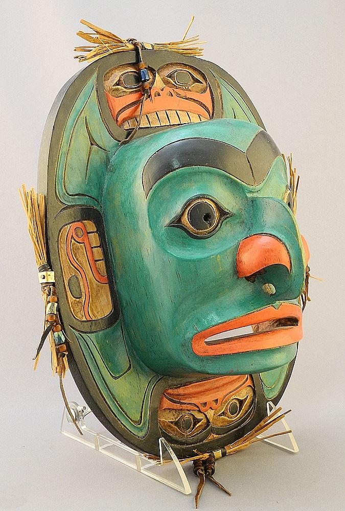Burrard Nation Mask signed by Arte George, 11 x 8 1/2 x 4 1/8", 4 Season Moon Mask.