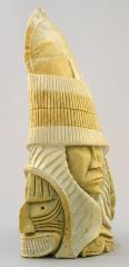 LOT 60 Six Nations Stone Sculpture Signed Jerry Henry, 10 3/4"h, "False Face & Eagle". Estimate: $150 - $200 Auction Date: Tuesday, July 25 2023 at 4:00 PM