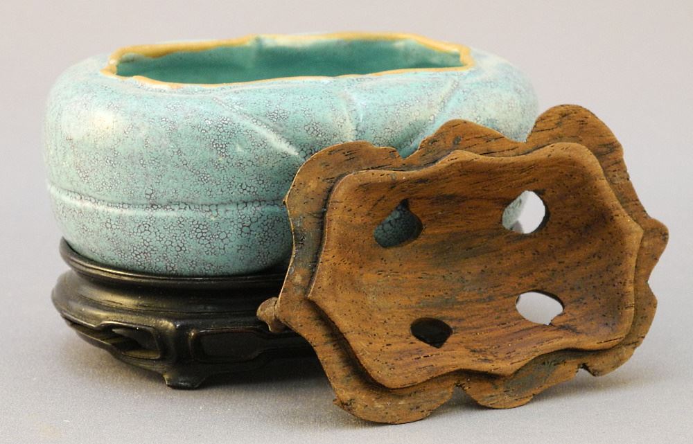 LOT 281 Chinese Qing Robin's Egg Blue Brush Washer with Cover on Stand, 1 .5/8 x 3 1/4 x 2 1/4". Estimate: $200 - $300 Auction Date: Tuesday, July 25 2023 at 4:00 PM