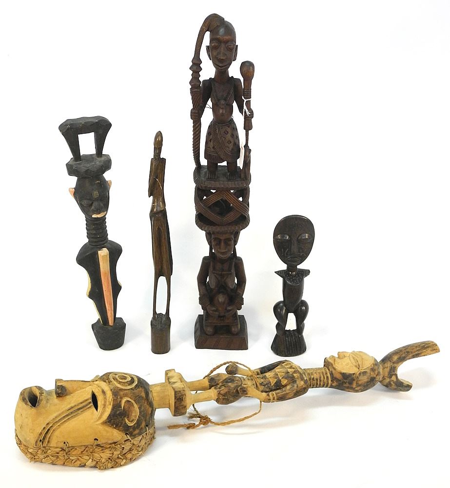LOT 119 5 African Figural Carvings, 11-28"H. Estimate: $60 - $100 Sold For: $45 Auction Date: Tuesday, October 03 2023 at 4:00 PM
