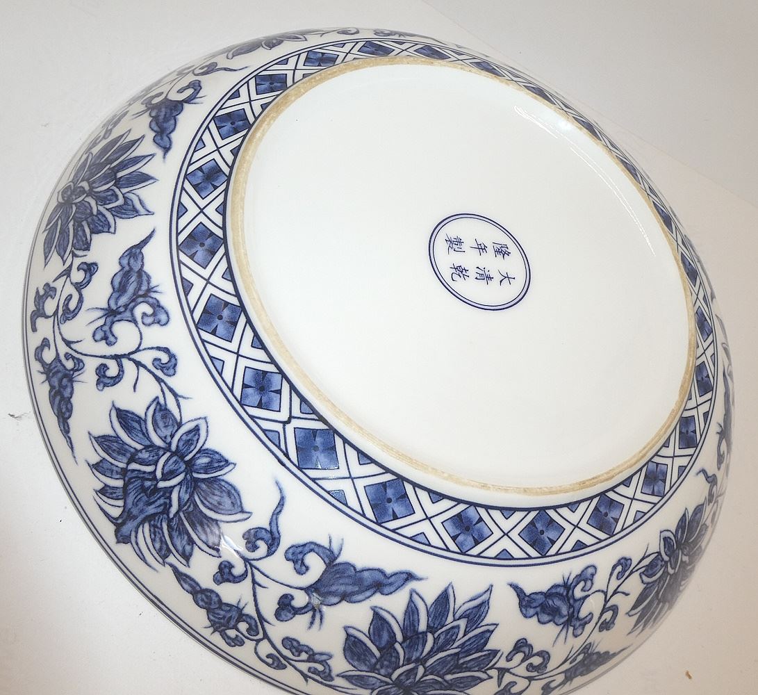 Blue and White Fish Pond Charger, 20th Century, 8"W.