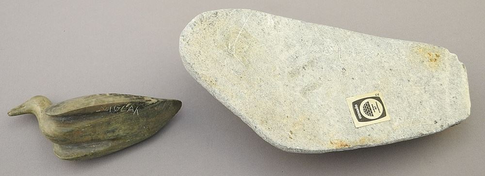 3 Inuit Stone Carvings signed Epakohak/Niglak/00148 and Commercial Carving 3 3/8-6"L.
