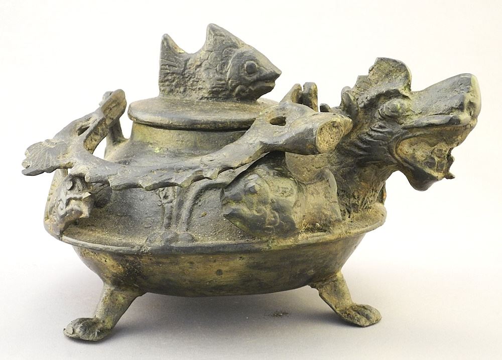 LOT 85 Asian Bronze Kettle Shaped Vessel, Approximately 6"W & 5"H. Estimate: $60 - $100 Sold For: $110 Auction Date: Tuesday, October 03 2023 at 4:00 PM
