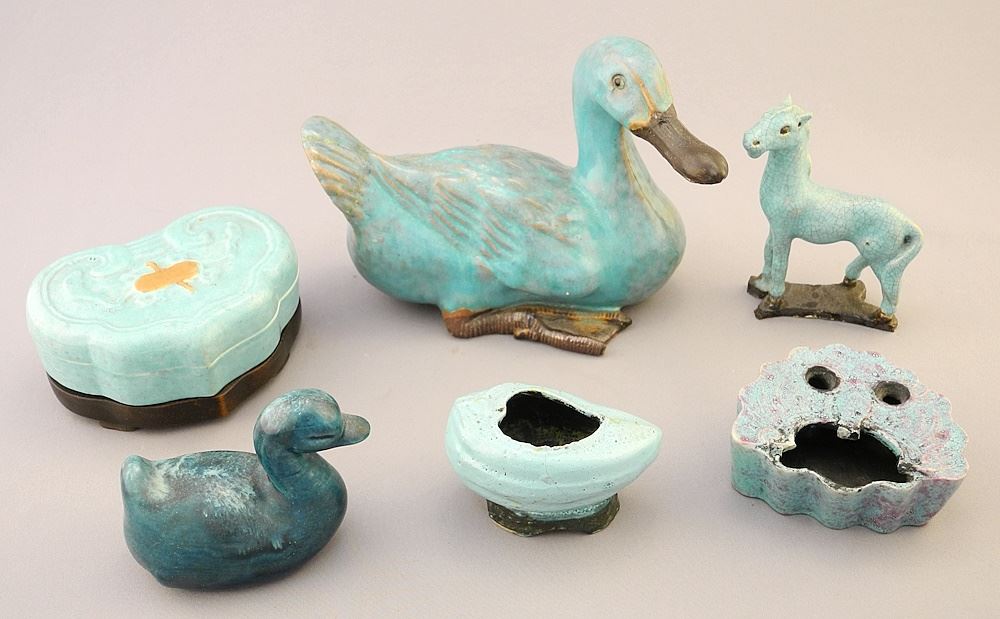 LOT 137 Collection of Chinese Robin's Egg Blue Wares (variously damaged), Duck & 2 Enamel Dishes, 3 1/2" Estimate: $80 - $100 Sold For: $200 Auction Date: Tuesday, October 03 2023 at 4:00 PM