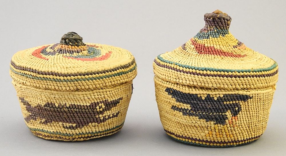 LOT 80 2 Nu-Chah-Nulth Baskets, approx. 3", "Eagle & Whale". Estimate: $200 - $300 Sold For: $275 Auction Date: Tuesday, October 03 2023 at 4:00 PM