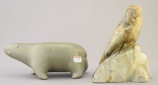 LOT 75 2 Stone Carvings: Bear signed Allie Appepq 5680(7 1/2") / signed indist. 6"H. Estimate: $80 - $140 Sold For: $120 Auction Date: Tuesday, October 03 2023 at 4:00 PM
