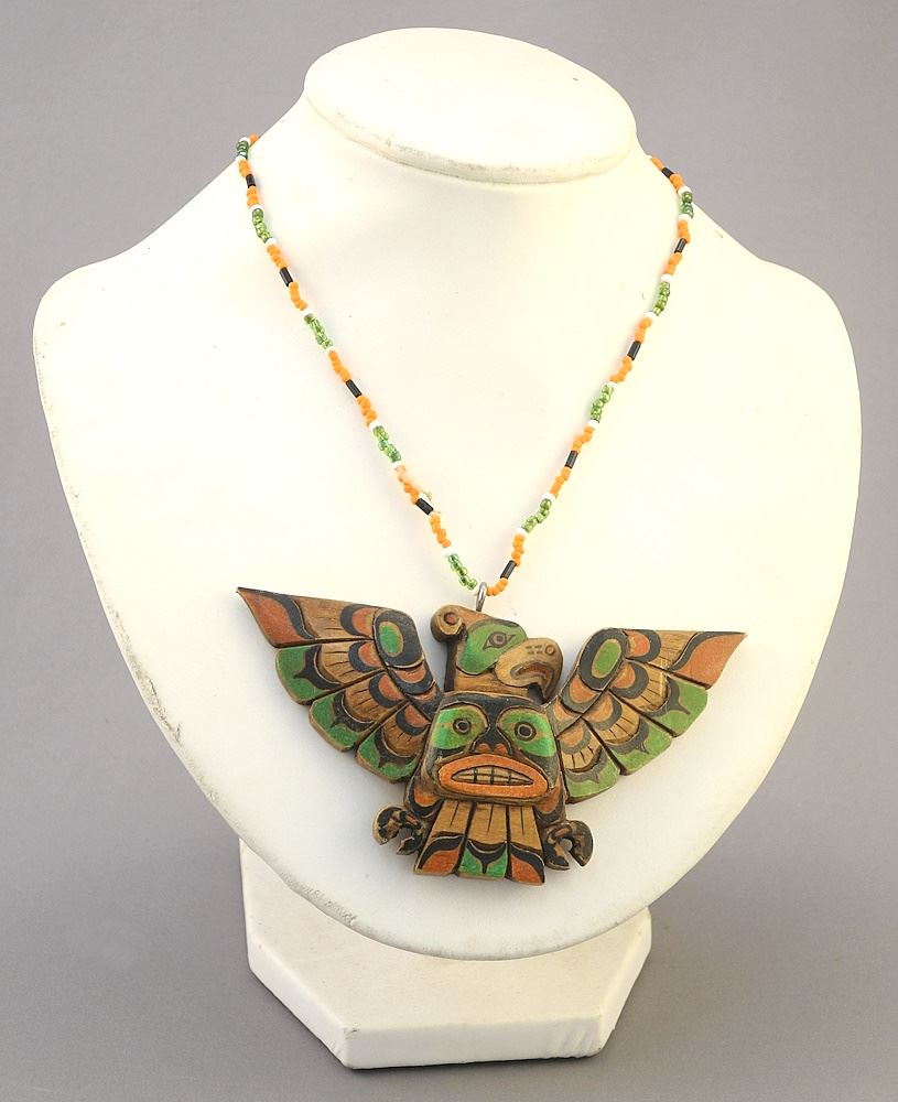 Northwest Coast Carved Cedar "Thunderbird" Pendant signed Peter Joseph, Quatsino, 4 1/2".