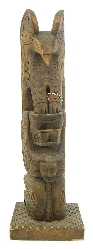Nuu-Chah-Nulth Model Totem Pole signed N.Joseph 1972, 25 1/4"H.