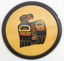 LOT 123 Northwest Coast Plaque signed Indistinctly, 23 3/8" Diameter, "Proud Eagle". Estimate: $100 - $200 Sold For: $100 Auction Date: Tuesday, October 03 2023 at 4:00 PM