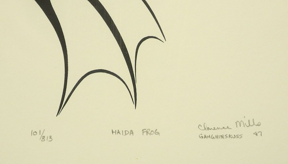 LOT 246 Limited Print signed Clarence Mills, 87', 10 1/2" x 11", "Haida Frog". Estimate: $100 - $150 Sold For: $150 Auction Date: Tuesday, October 03 2023 at 4:00 PM