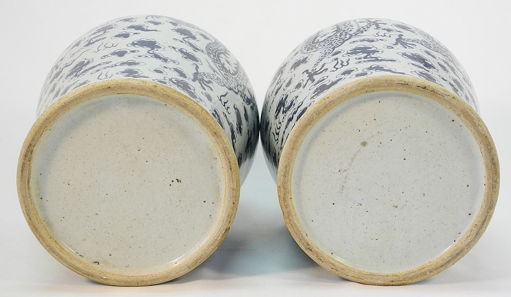 Pair of Blue and White Chinese Porcelain Vases with Covers, 18 1/2"