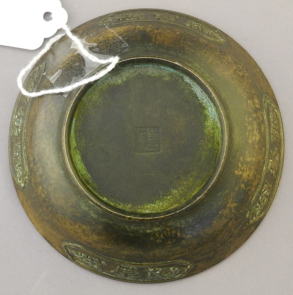 LOT 72 Chinese Bronze Dish, 4 1/16" diam. Estimate: $50 - $100 Sold For: $50 Auction Date: Tuesday, October 03 2023 at 4:00 PM