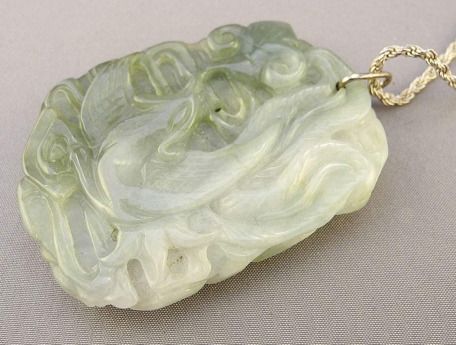 LOT 273 Chinese Jade "Dragon" Pendant (2"H) on 925 (marked) Silver Chain (28"L). Estimate: $60 - $100 Sold For: $70 Auction Date: Tuesday, October 03 2023 at 4:00 PM