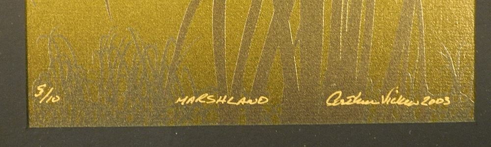 Mixed Media with 24K Gold Powder signed Arthur Vickers 2003, 19 1/2" x 7 1/4""Marshland".