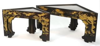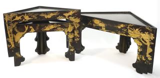 Nesting set of 8 Japanese Gilt Lacquer Triangular Tables.