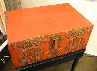 LOT 255 Chinese Scarlet Lacquer Leather Chest with Lock, 13 x 30 3/4 x 20 1/2". Estimate: $400 - $500 Auction Date: Tuesday, October 03 2023 at 4:00 PM