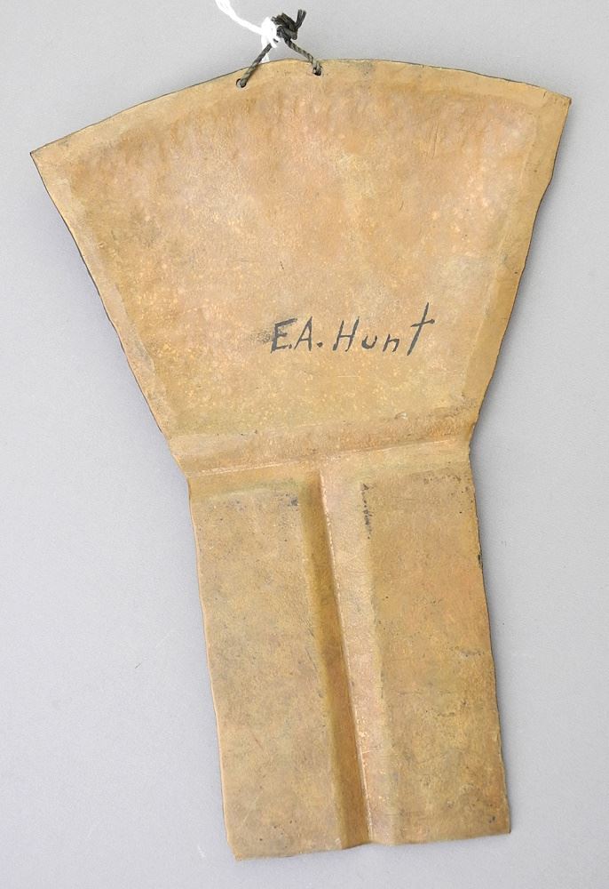 LOT 19 Mini Eagle Copper signed E.A.Hunt, 7 1/2" x 5". Estimate: $120 - $180 Sold For: $325 Auction Date: Tuesday, October 03 2023 at 4:00 PM
