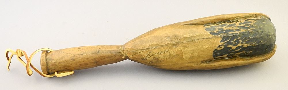 Human Rattle signed Simon Charlie, 13 1/2"L.