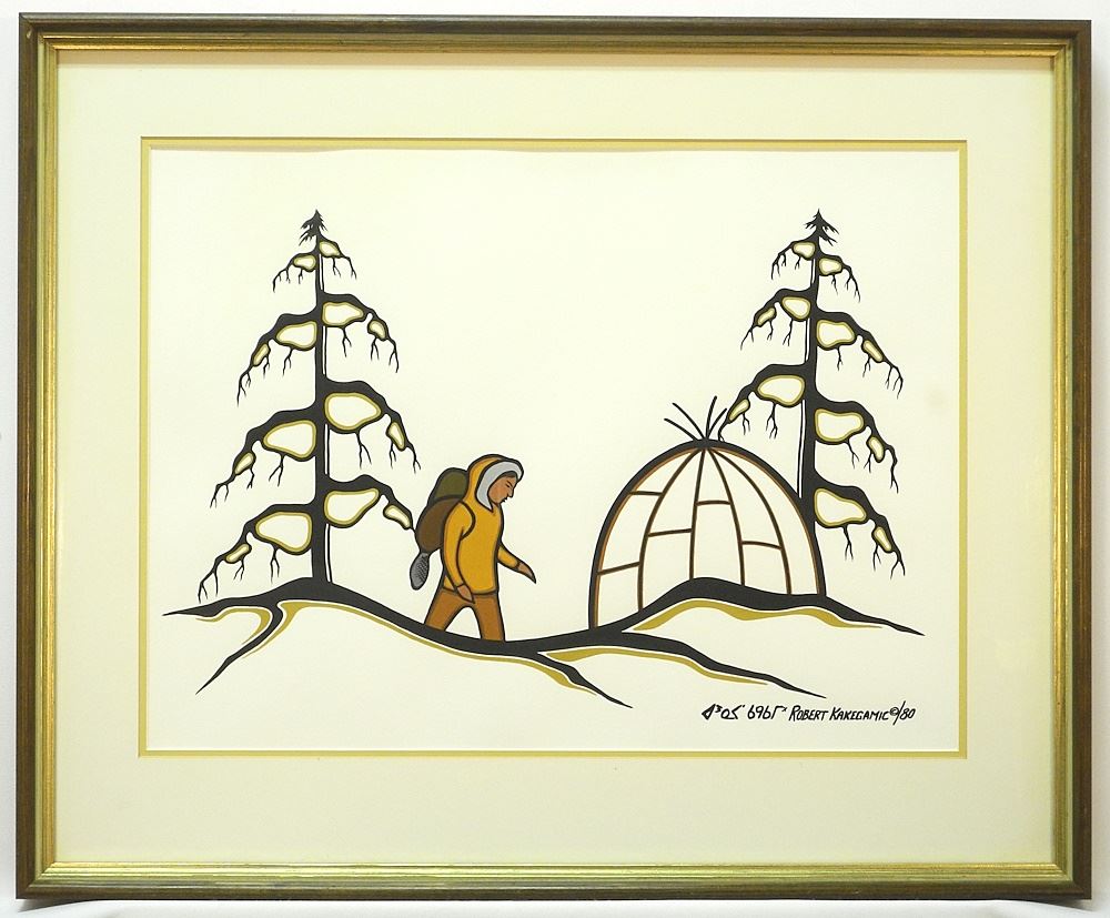 LOT 127 1980 Print signed Robert Kakegamic, 14 1/2" x 19 1/2", "Beaver Hunter". Estimate: $150 - $250 Sold For: $50 Auction Date: Tuesday, October 03 2023 at 4:00 PM
