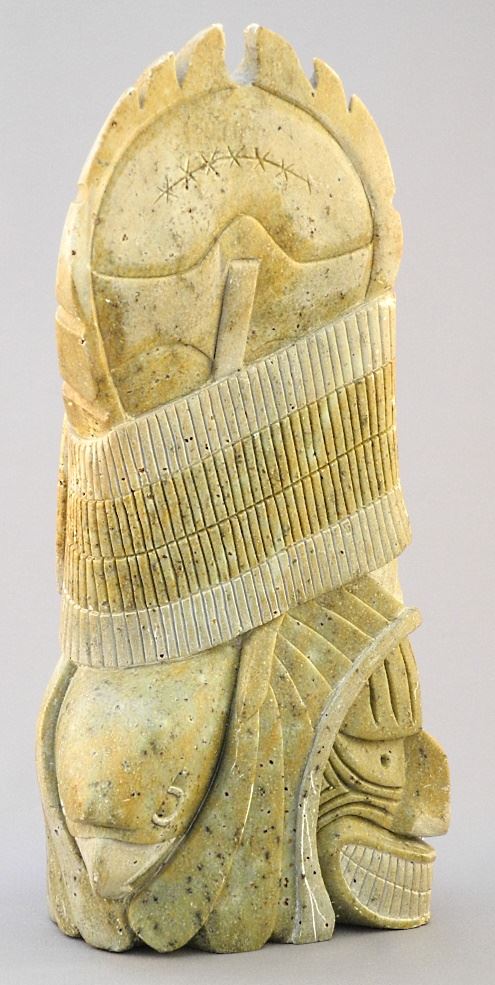Six Nations Stone Sculpture Signed Jerry Henry, 10 3/4"h, "False Face & Easel".