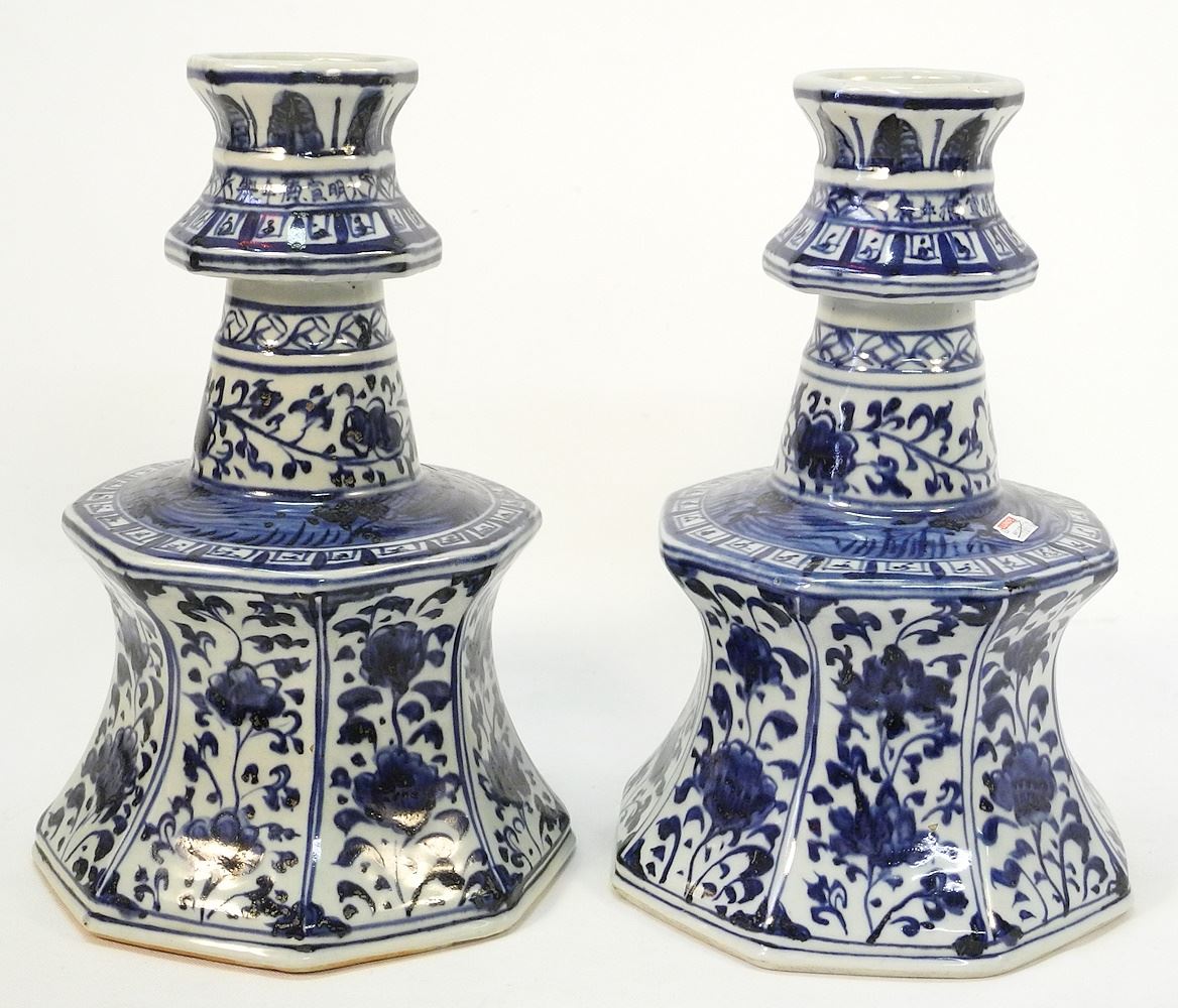Pair of Blue and White Chinese Porcelain Vases, 12".