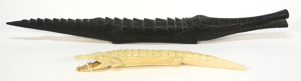 LOT 187 2 African Alligator Carvings, 15 1/4 x 27"L, NO EXPORT. Estimate: $60 - $100 Auction Date: Tuesday, January 30 2024 at 4:00 PM