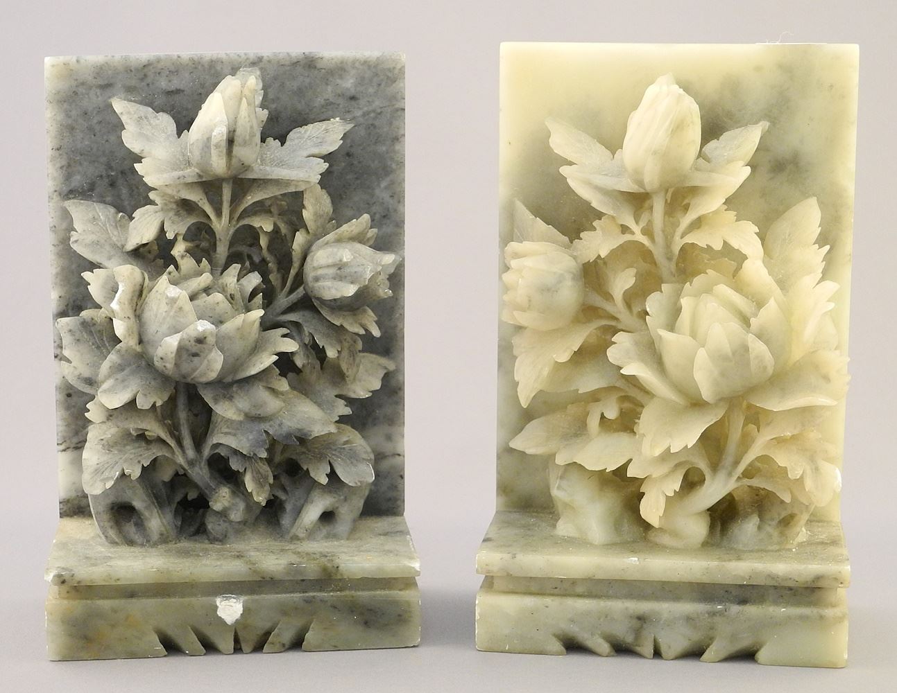 Collection of Chinese Softstone Carvings: Seal / Figure / Bookends, 7"H.