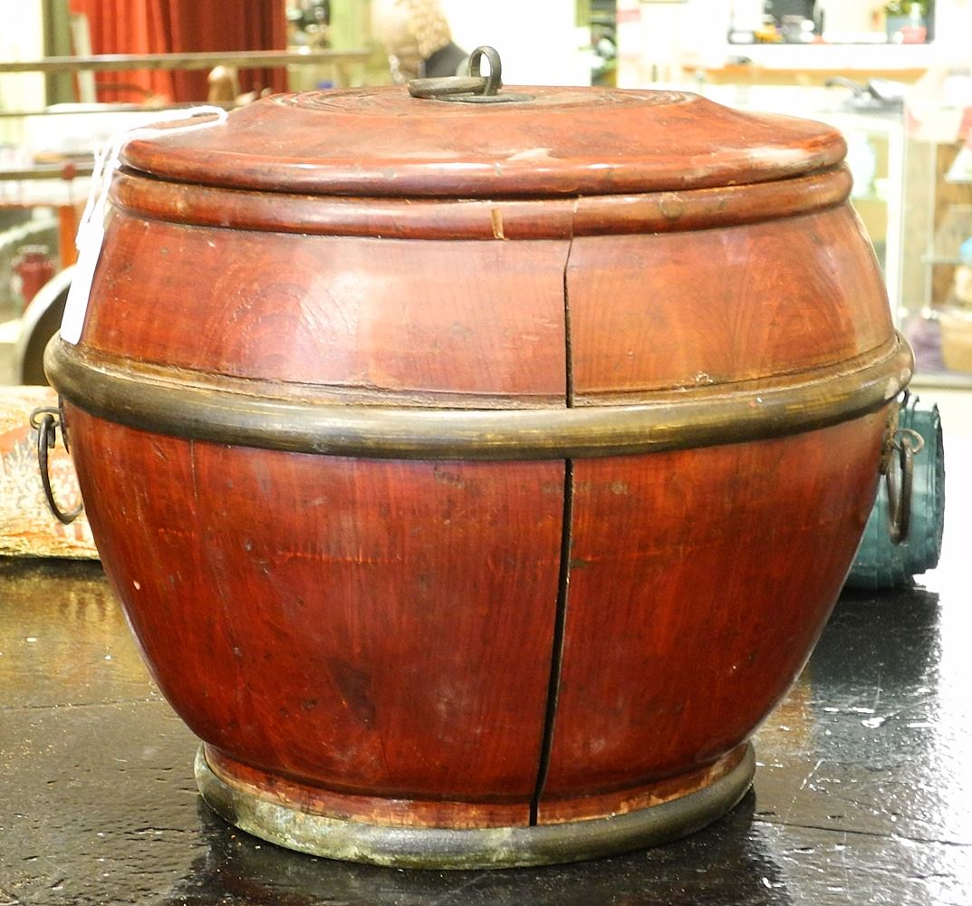 Chinese Scarlet Lacquer Wood Covered Vessel, 9 1/2" x 10 3/4".
