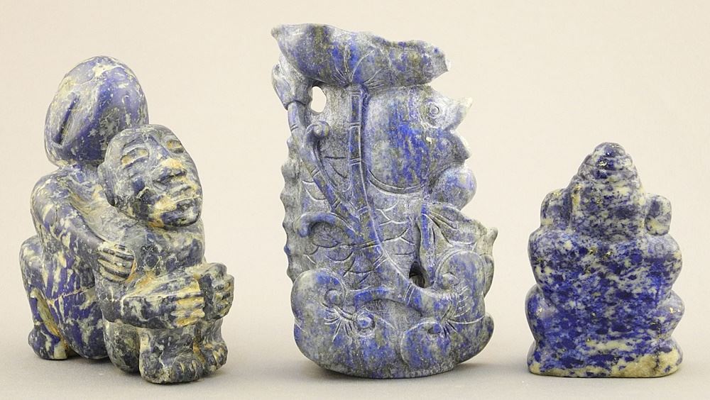 3 Lapis Carvings: Figural / Ganesh / Carp, 2 1/2 - 3 3/4"H.