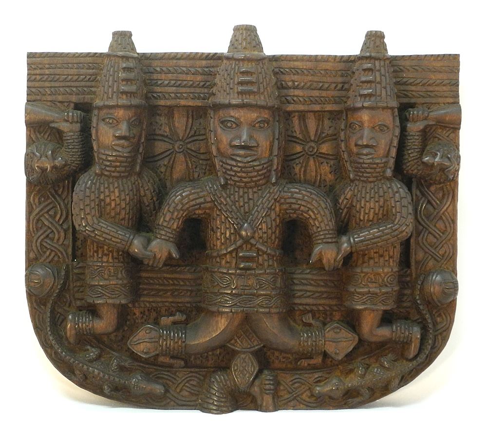 LOT 15 Benin Carved Wood Plaque, 16 1/2" x 18 1/2". Estimate: $200 - $300 Auction Date: Tuesday, January 30 2024 at 4:00 PM
