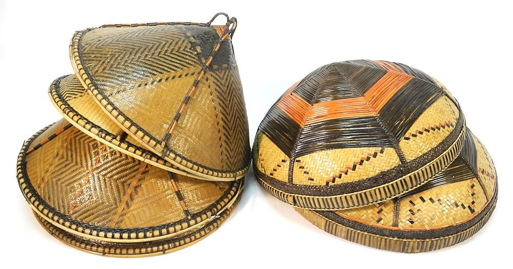 LOT 173 Collection of 6 Kelabit Tribe Borneo Woven Fibre Hats. Estimate: $60 - $120 Auction Date: Tuesday, January 30 2024 at 4:00 PM