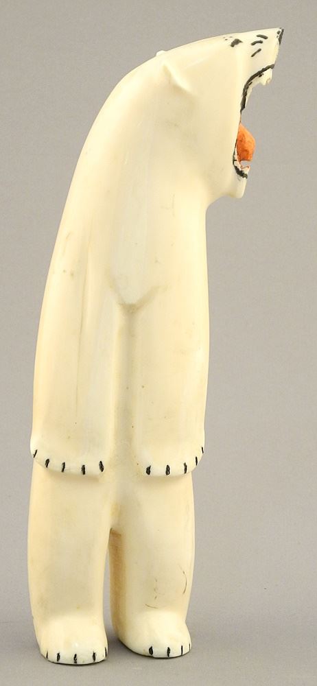 Inuit Walrus Tusk Polar Bear Figure, 6 3/4"H, NO EXPORT.