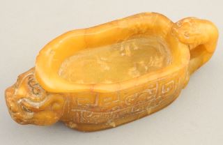 Chinese Softstone "Dragon Cup", Tongzhi Mark, 5 7/8"L.
