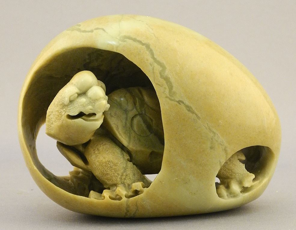 2 Chinese Softstone Carvings: Buddha (11 1/2"H) & Turtle Egg (4 1/2"L).