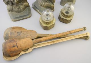 LOT 241 Collection of Opium Lamps & Tobacco Pipe with Scale & Headdress Book Ends Estimate: $100 - $200 Auction Date: Tuesday, January 30 2024 at 4:00 PM