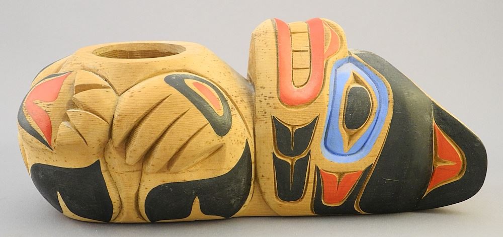 Kwagiulth Carving signed Doug LaFortune, 3 5/8 x 8 3/4 x 3 3/4", "Bear" Bowl.